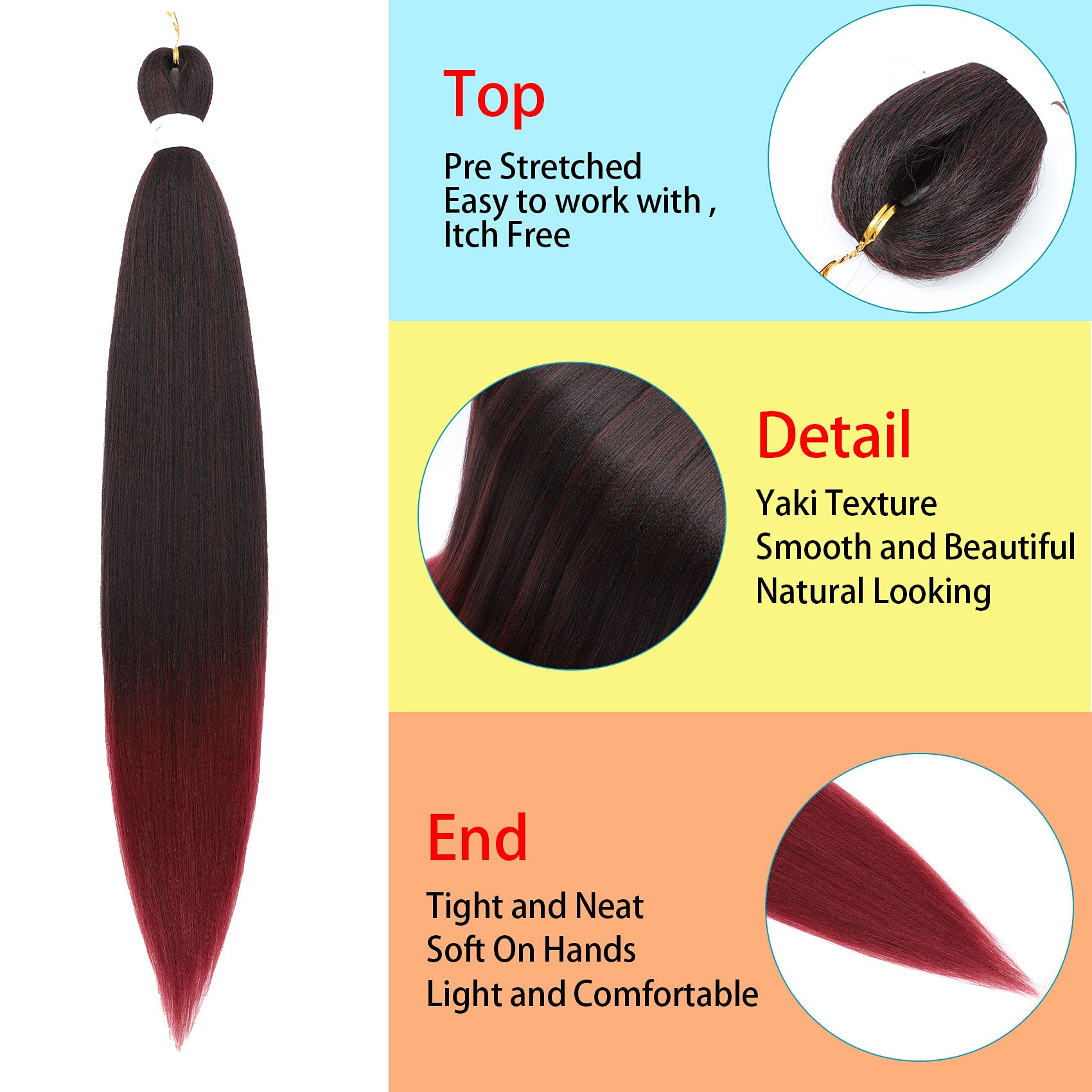 Pre Stretched Braiding Hair Extensions 32 Inch 8 Packs Synthetic Braiding Hair Crochet Braids Natural Easy Braid Crochet Hair Hot Water Setting Professional Soft Yaki Straight Texture 32inch 1b Purple